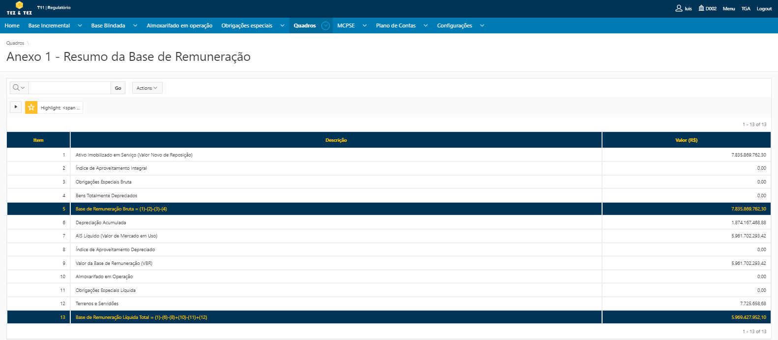 T11 - Base de Remuneração Regulatória