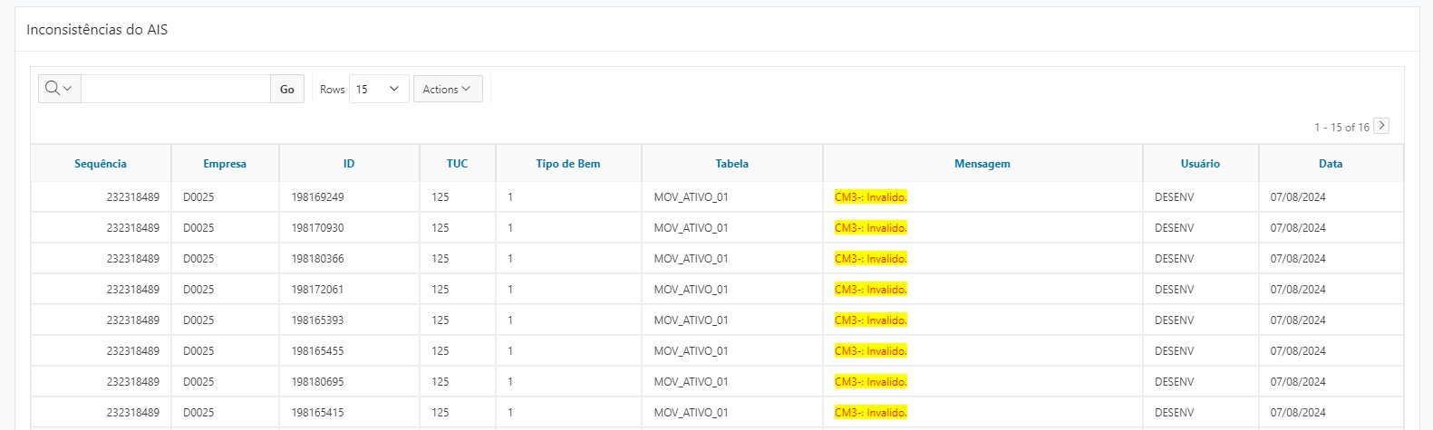 O sistema valida essas movimentações e a codificação segundo o Manual de Controle Patrimonial do Setor Elétrico (MCPSE), gerando logs de inconsistências para revisão. Após a validação dos dados do AIS, é possível criar uma base “Contábil” que permite a conciliação com a base física, integrando informações de diversas fontes como BDGD, BDIT, Excel e PM_SAP. Essa conciliação é crucial para assegurar a integridade e a conformidade dos registros contábeis com a realidade dos ativos imobilizados.